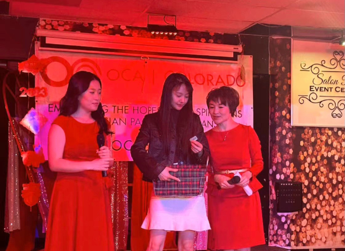 爽子参与美国华人的慈善活动,鞋子和衣服都是大牌。