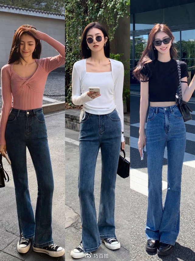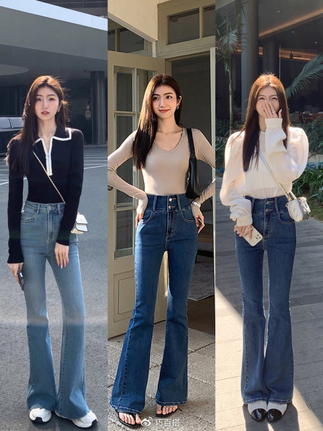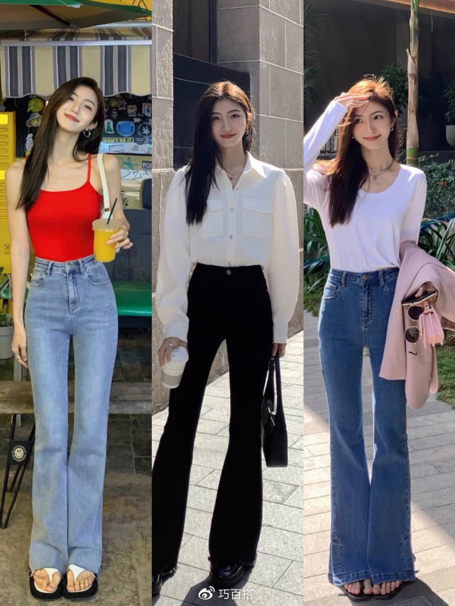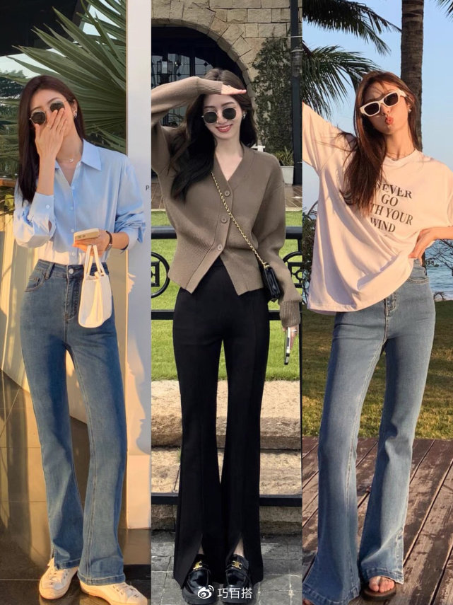 身材好的姐妹,一定不要错过紧身喇叭裤,腿长、腿细的穿上身效果堪比超模,身材不好,腿粗、腿不直的姐妹,在挑选单品时,建议选择宽松喇叭裤,遮肉显瘦的同时还能维护女性特征,实用性不是一般的强。