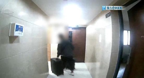 在查探清楚宿舍的情况后,该年轻人迅速进入宿舍里开始搜刮财物,不一会儿,他便推着两个黑色的行李箱大摇大摆地从现场离开了。