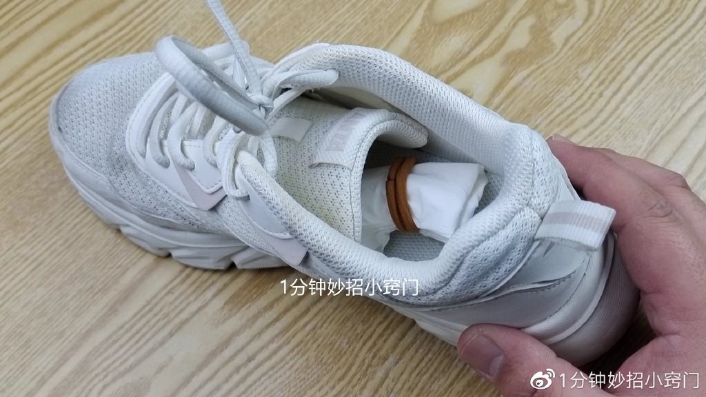平时,我们也可以准备一个纸巾包,把小苏打的粉末倒在纸巾里面包裹起来,用橡皮筋包扎好,每天回家之后,我们把纸巾塞进鞋子里面,用来清洁鞋子里面的臭味,这样第二天穿鞋子,鞋子里面也不会臭烘烘的,方法简单又实用。