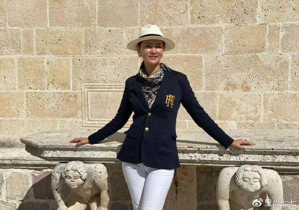 刘芳菲国外旅游照更像时尚博主,修身西装外套搭配紧身小脚裤太考验身材了,不过自律的女性也能够轻松驾驭,而且精致的时尚单品还可以增加个人魅力,礼帽与丝巾的加持让穿搭造型更加时髦且温柔,优雅的女性魅力更加突出,刘芳菲穿着几十块的一脚蹬平底鞋,简约时尚很轻松,整个人的松弛感更突出。
