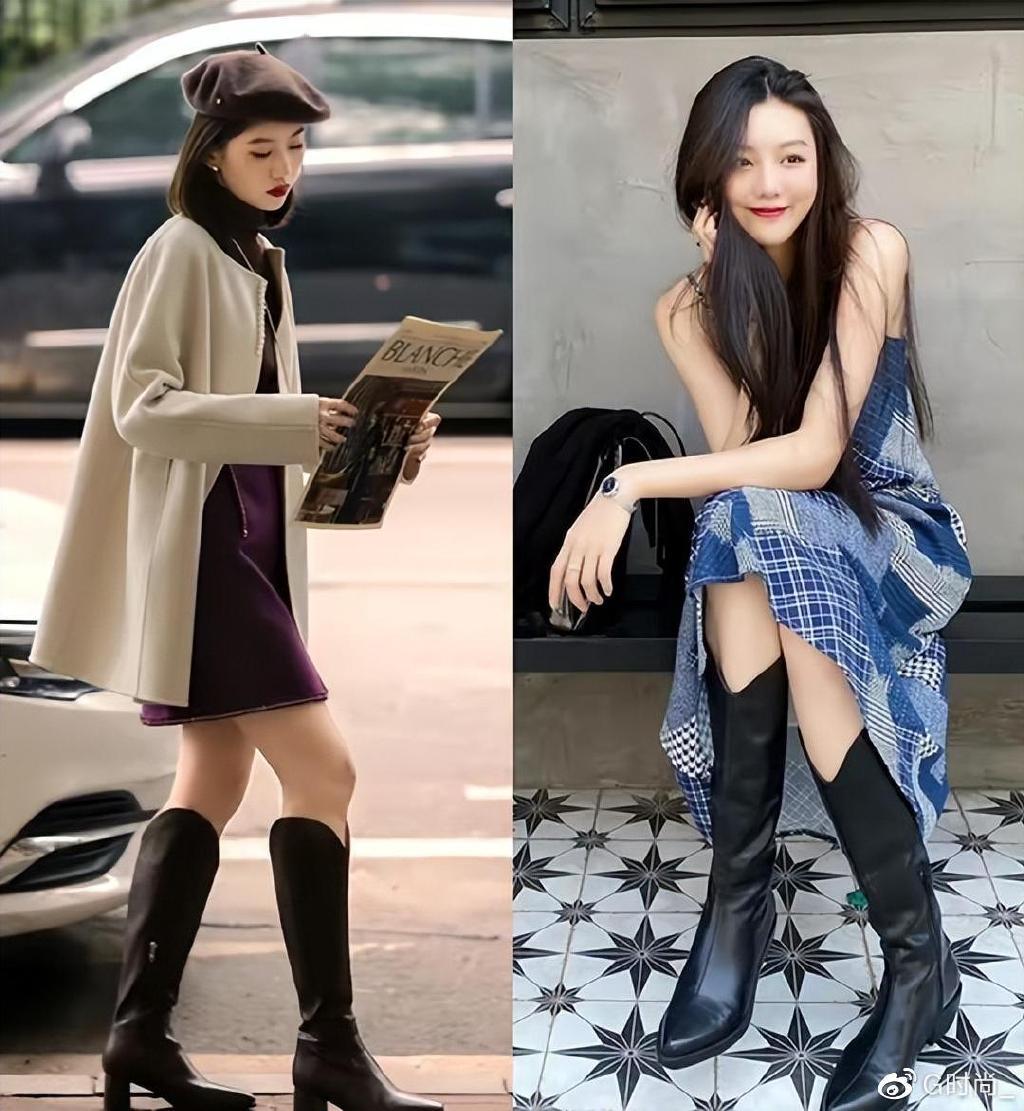 如果你的身材比例高挑,而且腿比较长的话,那你也可以尝试长筒靴,长筒靴穿在身上更有气场。