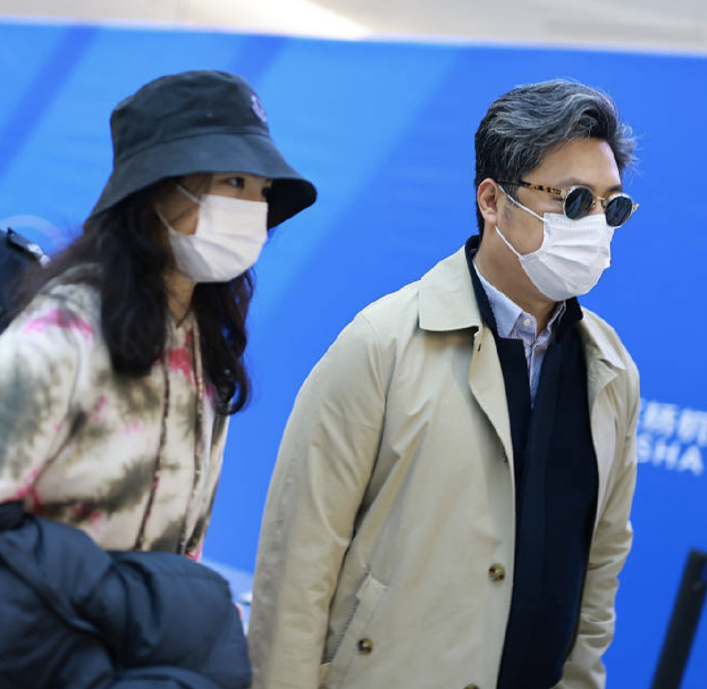 王诗龄一直低头刷手机,王岳伦就在一旁看着,他中年发福,越来越胖,口罩似乎都不够大了。