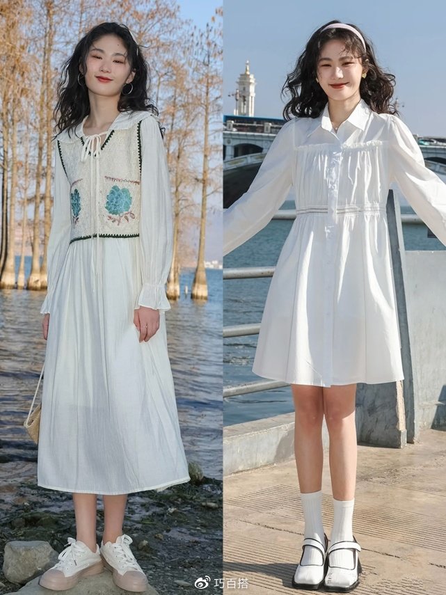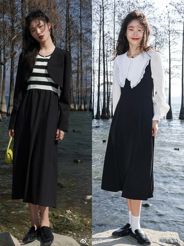 第二原则是遵循极简原则,身穿黑裙的姐妹,建议搭配白色小皮鞋,同理喜欢白裙的姐妹,尽量搭配黑色小皮鞋。