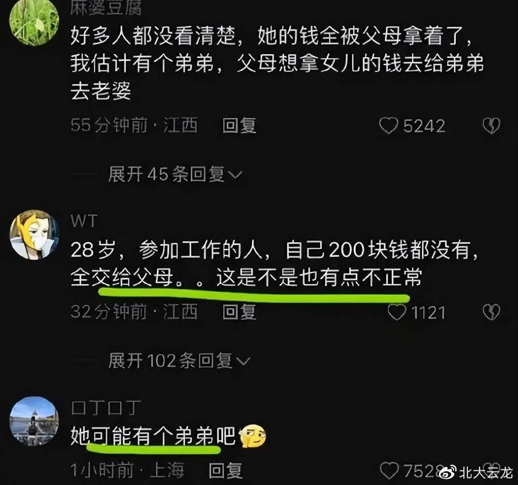 正当很多网友为此感到疑惑的时候,有人觉得这样的家庭,多半家里是有个弟弟,这些钱也是攒给儿子的,没想到后续真的是这样,女生确实有个弟弟,不得不说在家长眼里还是弟弟更重要一些。