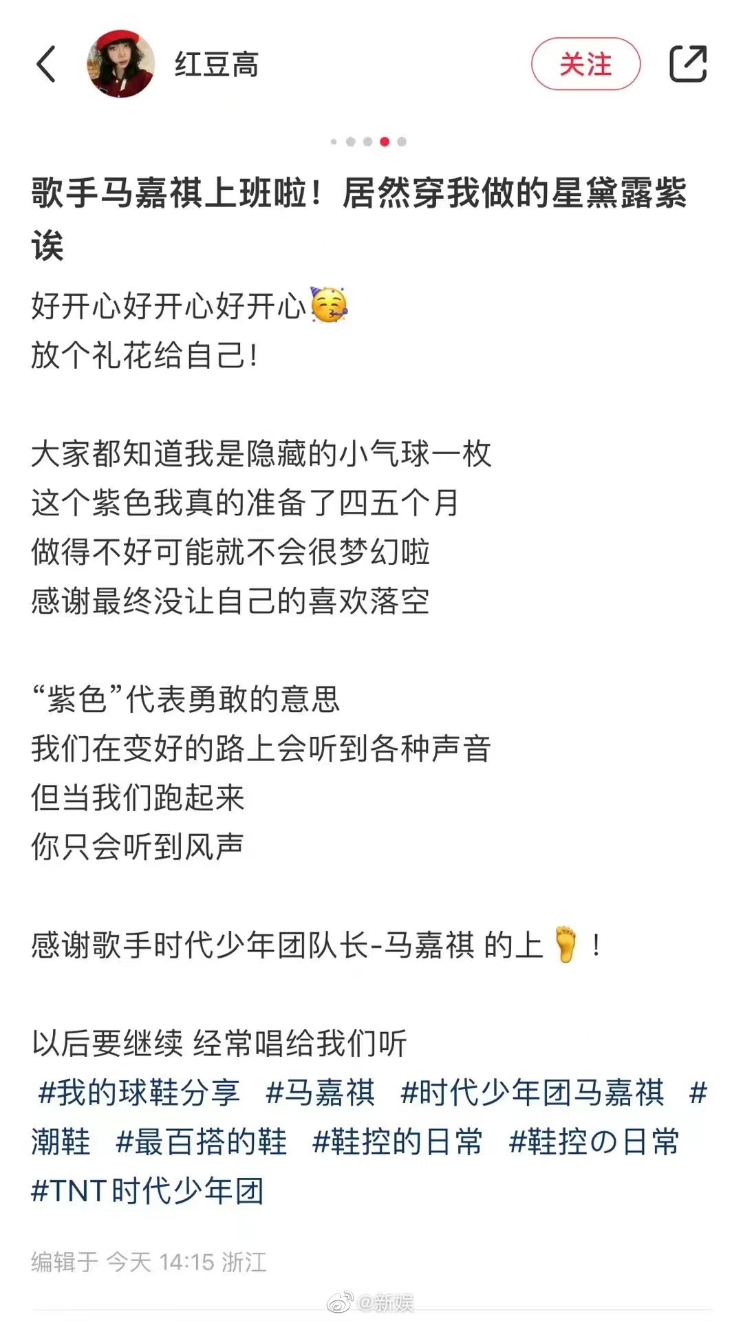 马嘉祺穿了粉丝设计的鞋子上班,这是什么神仙的双向奔赴~鞋子设计者从马嘉祺的歌声中感受到鼓舞和力量!这才是追星的意义呀!和偶像一起成为更好的自己马嘉祺和粉丝都好棒啊 @时代少年团队长-马嘉祺