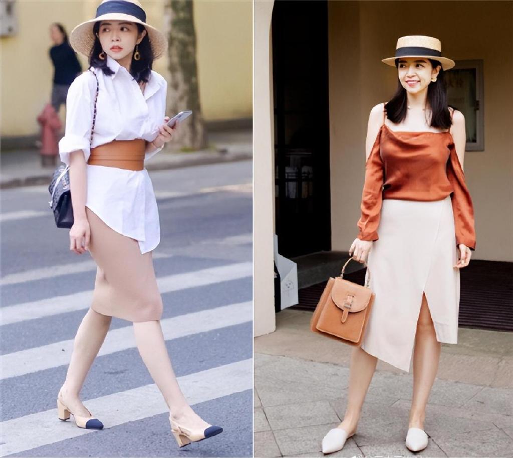 在用各种鞋履去搭配半身裙或者是连衣裙时,大家要注意以下,尽量别把脚踝遮住。这也是为什么不推荐大家穿靴子的原因,靴子很容易遮住我们的脚踝。