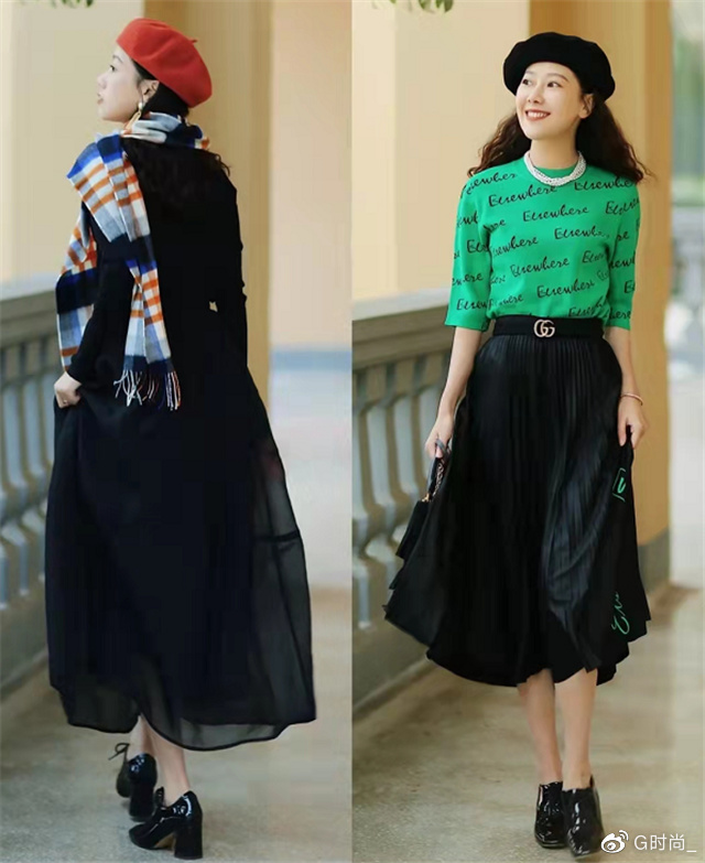在搭配时有一个小技巧非常有利于增高显瘦,那就是同色系搭配,裙子和鞋子的颜色如果是一样的,这就能够形成呼应,让你的下半身比例看上去也更加高挑。