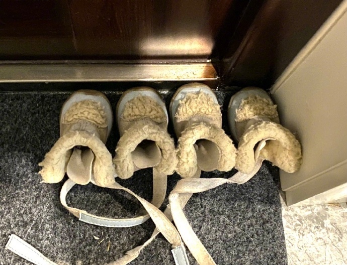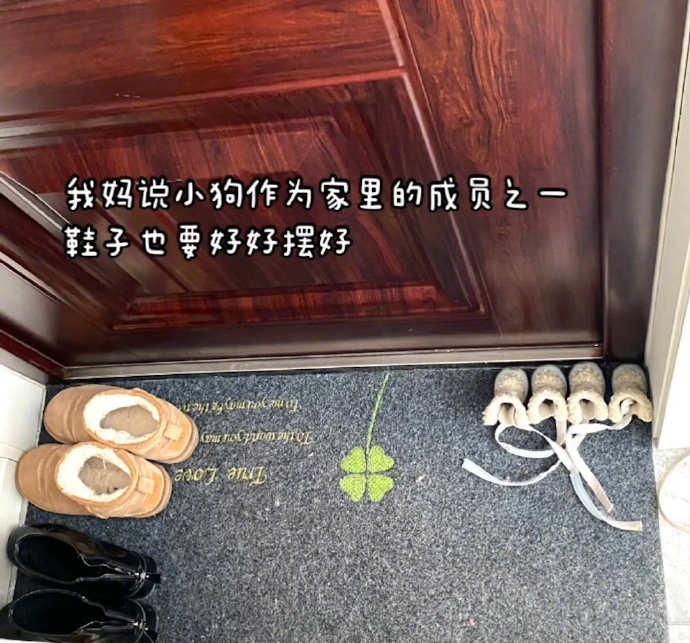 妈妈说狗狗的鞋子也要摆整齐,好幸福的狗勾