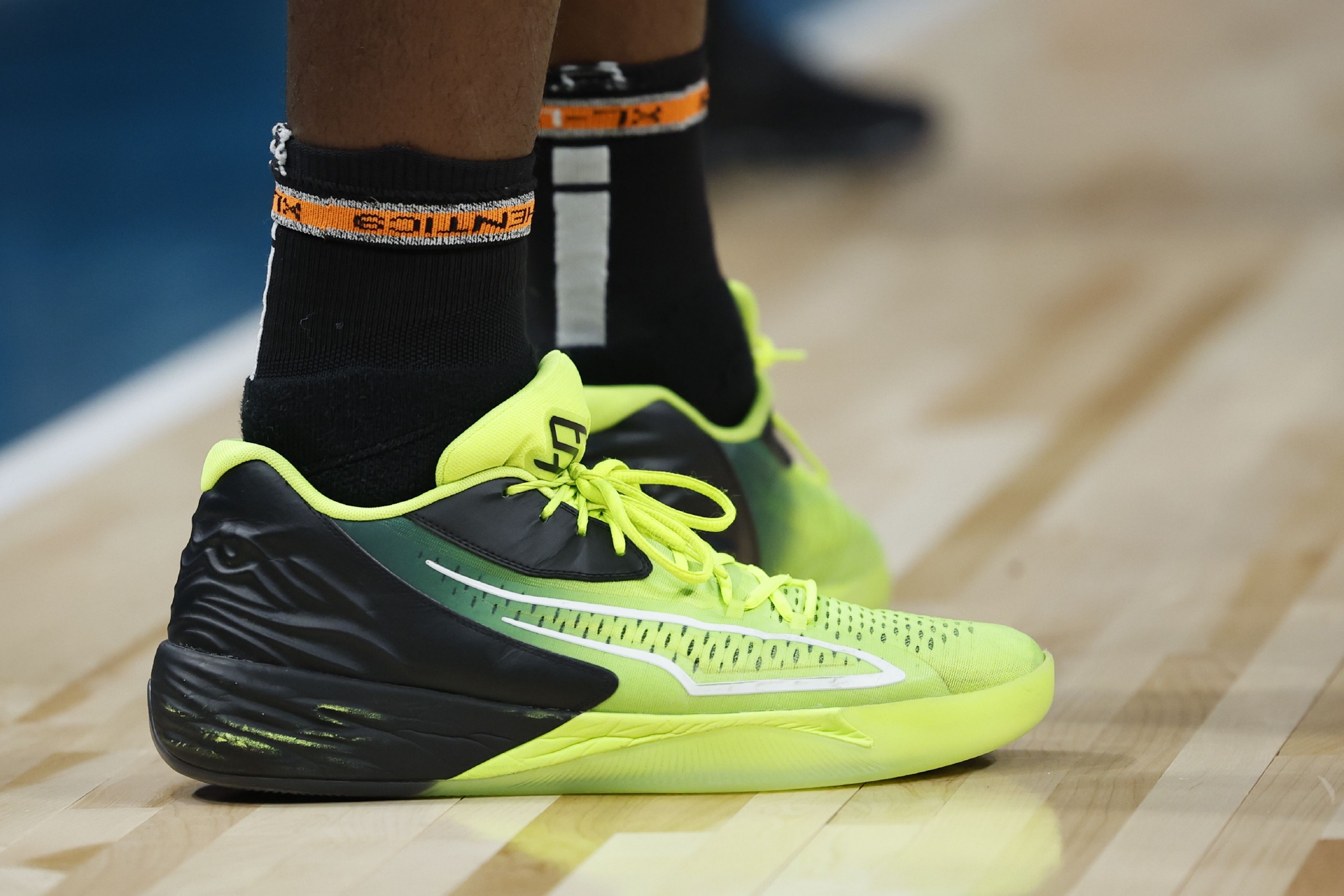 此役,活塞中锋、彪马代言人以赛亚-斯图尔特上脚Stewie 1黑绿战靴,这是WNBA巨星、彪马代言人布里安娜-斯图尔特的签名鞋。