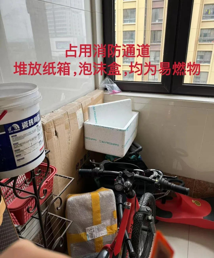 生活中,除了常见的鞋架,这些 “占道选手” 也常引发矛盾:电动车停在过道充电(消防部门重点警示的火灾隐患)、婴儿车长期摆在门口挡路、搬家剩下的纸箱堆成 “小山”(烟头一碰就可能引燃)、垃圾袋放过道 “等下楼顺手带” 却忘了拿、甚至有人把宠物笼、装修瓷砖堆在楼道…… 这些行为不仅影响通行,更埋下了安全隐患。