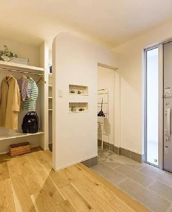 把玄关打造成迷你衣帽间,让出门和回家都变得井然有序。空间宽敞的话,直接定制通顶款,上层收纳换季被褥、不常用衣物,中间挂日常外套、风衣,下层预留鞋柜区域,鞋子、袜子、围巾等小物件各归其位。