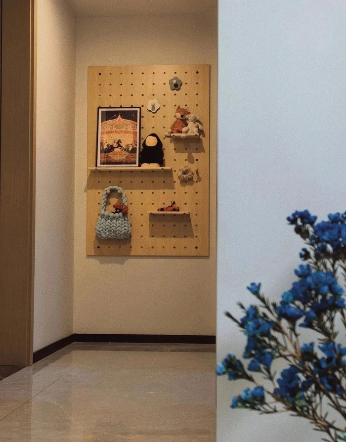想让玄关更有格调,不妨走艺术路线。在墙面挂几幅风格统一的画作、摄影作品,或者安装洞洞板,既能装饰又能挂置钥匙、耳机等小物件,实用又有设计感。