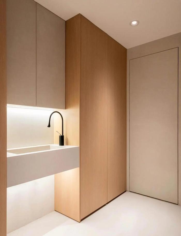 注重健康的家庭,一定要试试玄关洗手台设计。外面接触的公共设施难免沾有细菌,一进门就能洗手消毒,把病菌挡在生活区域之外。规划时要提前预留给排水管道,台下盆是优选,台面无卫生死角,清理起来超轻松。