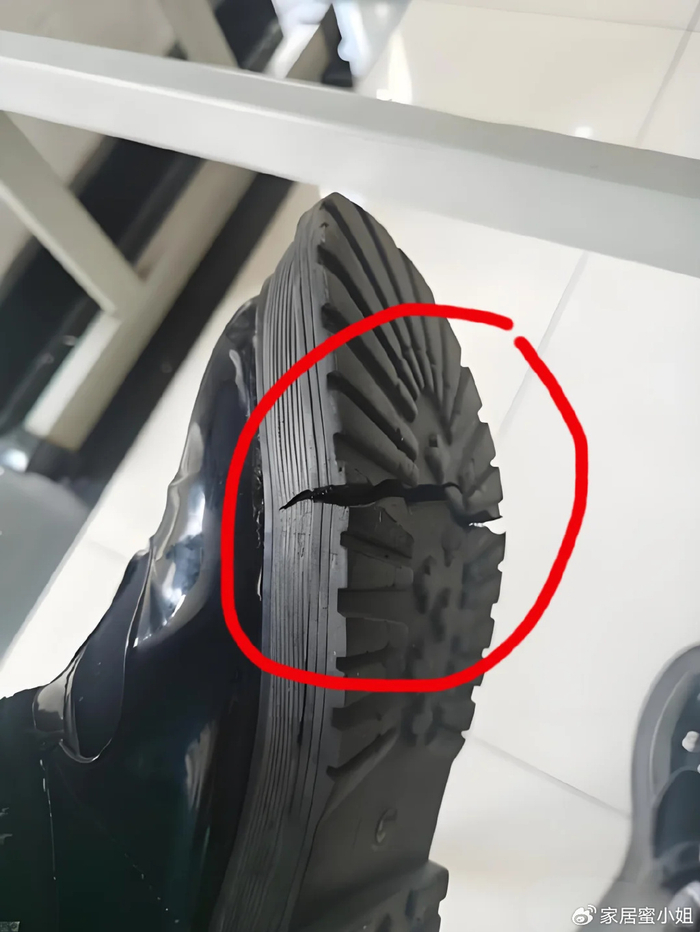 出现裂纹的鞋子穿起来不仅会影响美观,而且走路也肯定不舒服,一旦整体断裂在马路上那就太尴尬了。