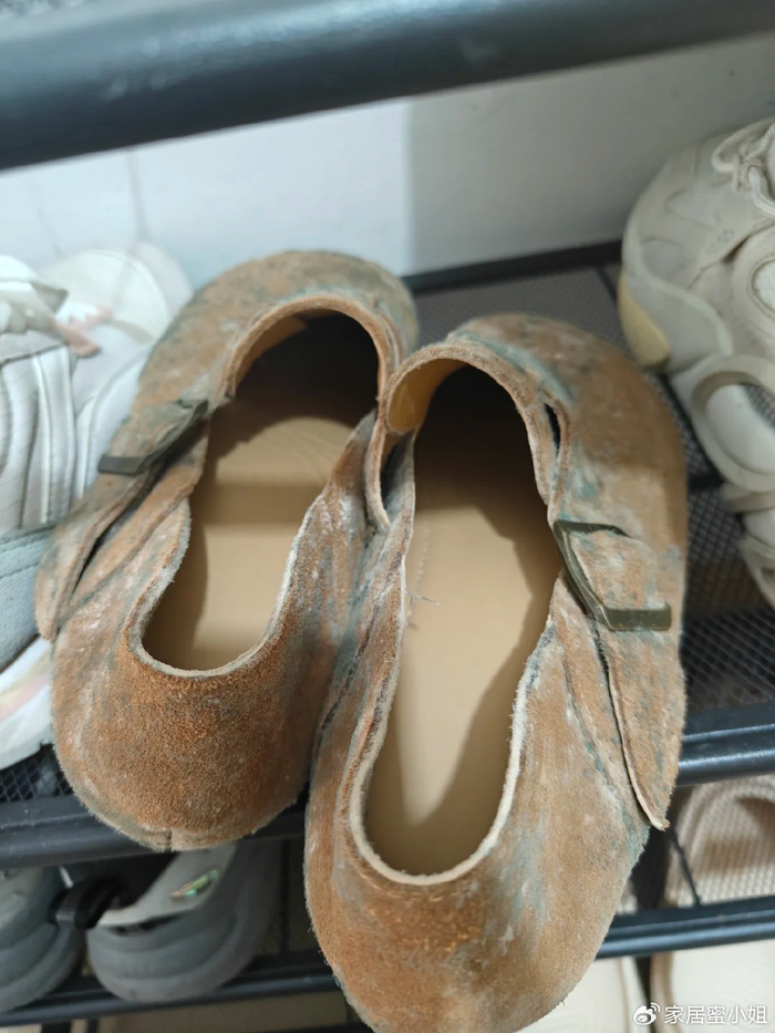 这样的鞋子就不要继续放在鞋柜了,否则还会污染到其他的鞋子,而且霉菌中会产生一种叫“黄曲霉素”的细菌,也不利于我们的健康。